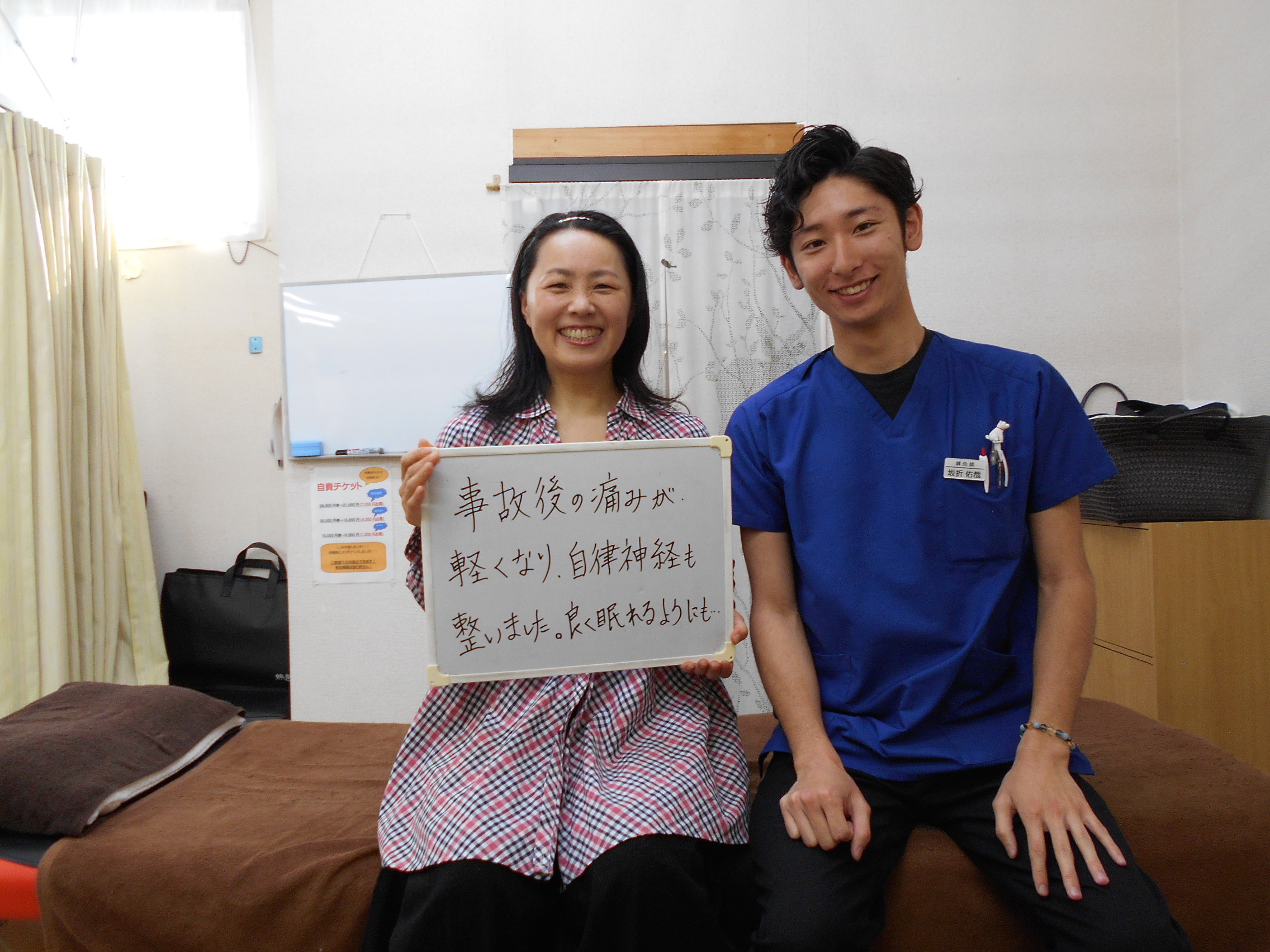 はがくれさんとても良かったです。むち打ちの辛い首の痛みと肩の強ばりが治りました。